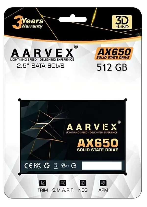 - Aarvex AX650 512 GB 2.5 Sata SSD