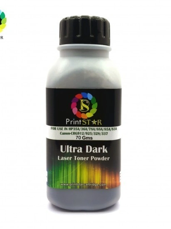 CARTRIDGE INK Model No PRINT STAR LASER TONER POWDER FOR 36A|88A 70GM Toner Powder Brand Compatibility HP | Canon Color Black Toner Powder Volume 70 gm Compatibility HP LaserJet 35A, 36A, 78A, 88A, 85A, 83A Canon CRG912, 925, 328, 337 Technology Powder